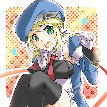 beretblonde hairdetached sleevesglovesgreen eyeshatnecktieribbonshort hairsolothighhighszettai ryouiki