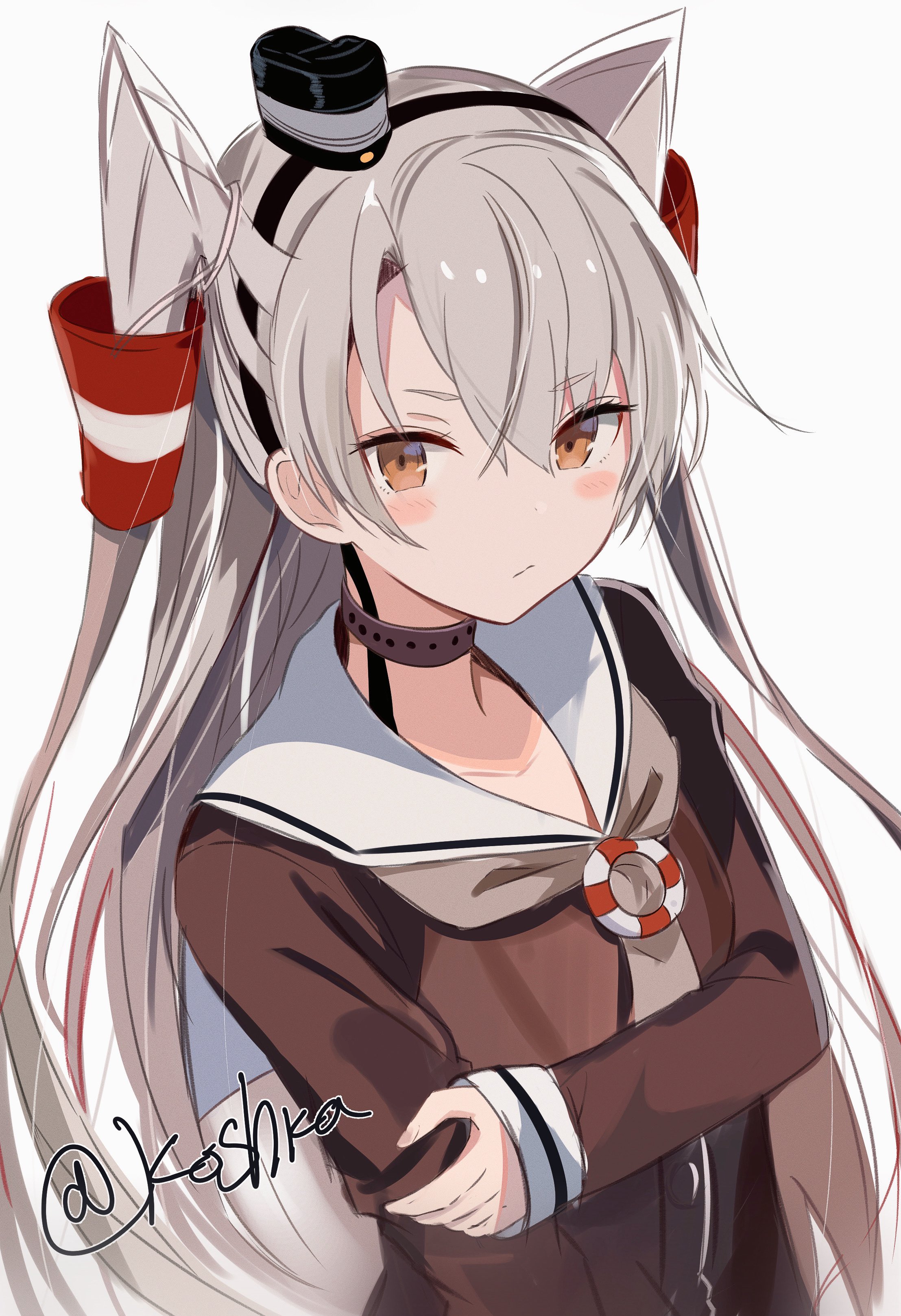 1girlbrown dressbrown eyeschokercrossed armsdressgrey chokergrey hairgrey neckerchiefhair tubeshatlifebuoy ornamentlong hairlong shirtlong sleeveslooking at viewermini hatneckerchiefone-hour drawing challengesailor collarsailor dresssimple backgroundsmokestack hair ornamentsolotwitter usernametwo side upupper bodywhite backgroundwhite sailor collar