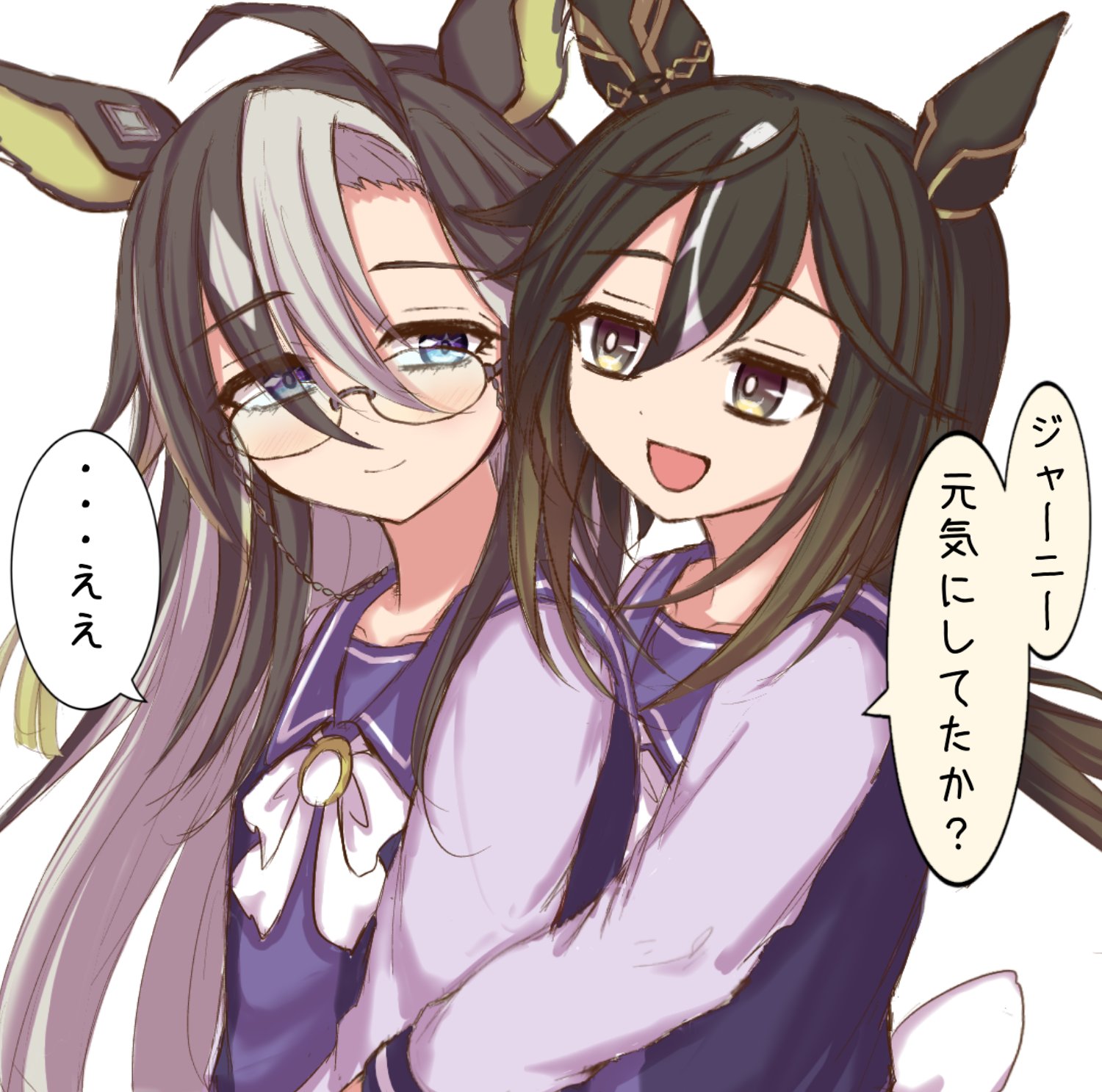 aotsuki eito, sumino takumi, the hundred line -last defense academy-, artist request, highres, non-web source, source request, 2girls, black thighhighs, genderswap, genderswap (mtf), gloves, hood, hoodie, multiple girls, rivdevy, skirt, sunglasses, thighhighs, yuri