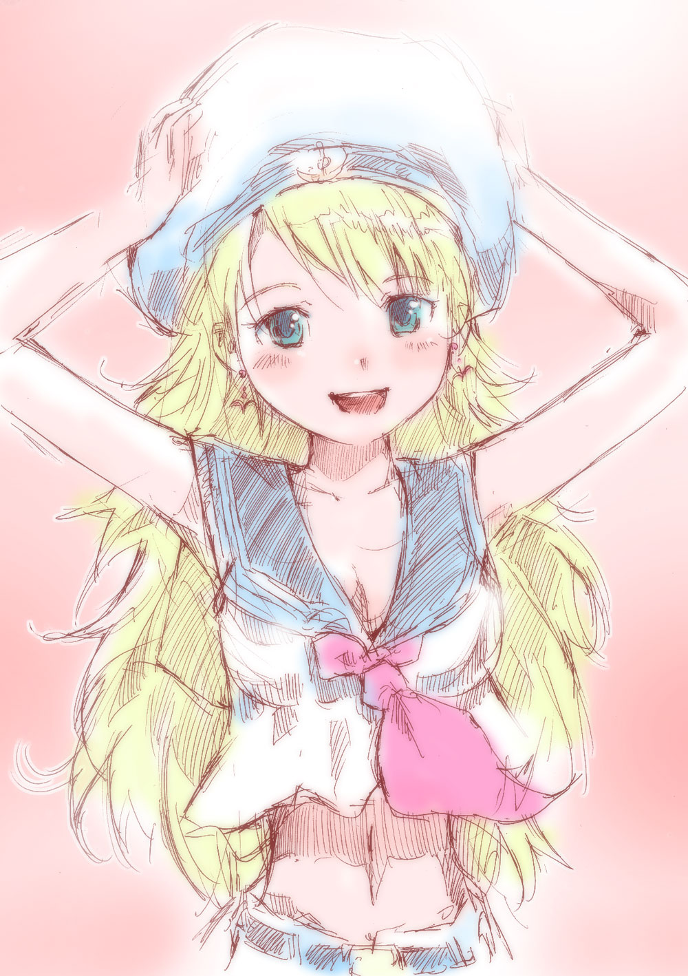 00s1girlblonde hairbreastsfemale focusgradient backgroundgreen eyeshatlong hairmidriffnavelsailorschool uniformserafukusolo