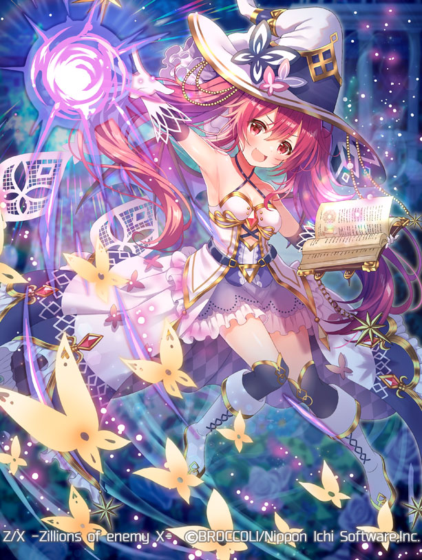 1girlarmpitsbare shouldersbat wingsblack thighhighsbookbootsbreastsbugbutterflycleavagedressenergy ballglovesglowing butterflygold trimhatholdingholding bookinsectlight particleslong hairlooking at viewernei (z/x)open mouthred eyesred hairsmall breastssolothighhighstwintailswhite bootswhite dresswhite gloveswhite hatwingswitch hat