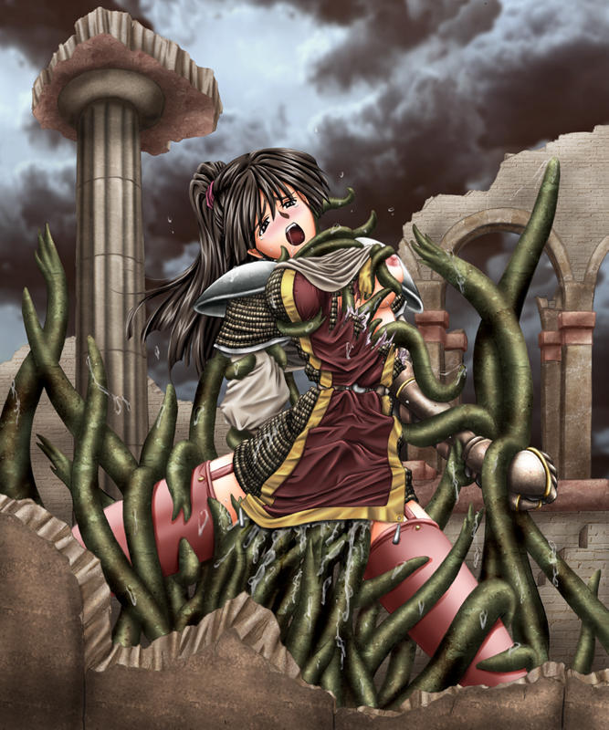 1girlarmorblack hairbreastsdefeatgropingknightlarge breastslong hairmonsternipplesponytailraperestrainedscreamingtearstentaclesthighhighstorn clotheswarrior