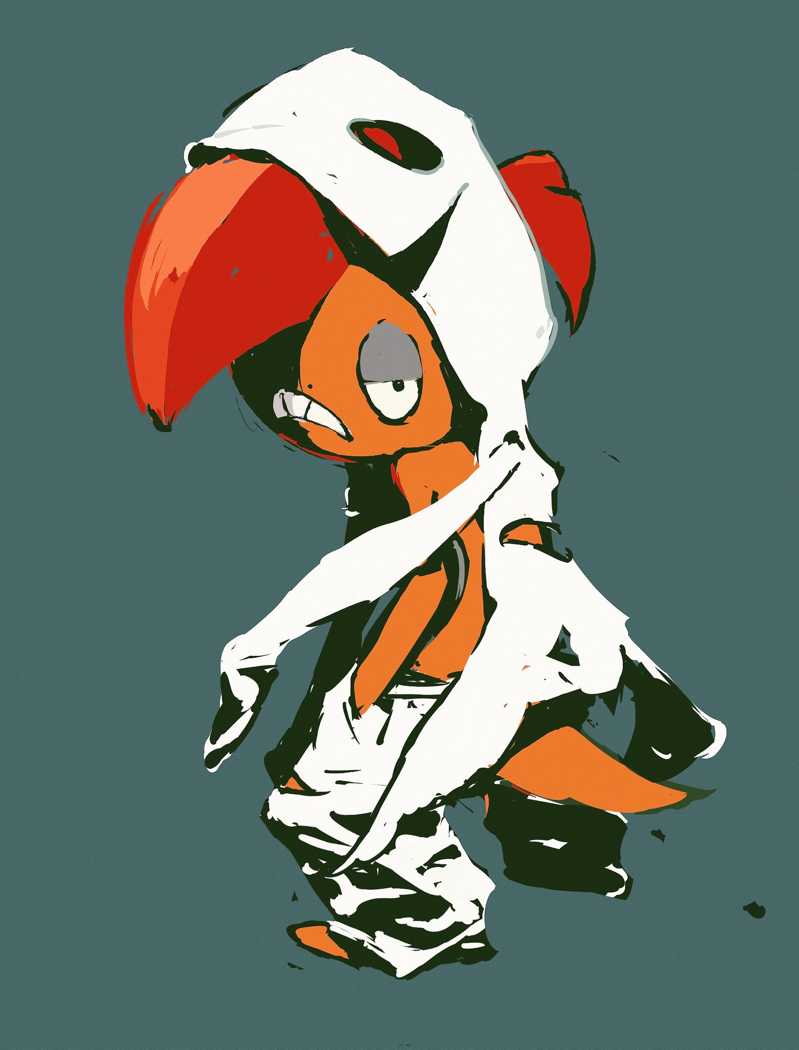 colored skinfrowngen 5 pokemonhands in pocketshoodhood uplooking at viewerlooking backmega pokemonmohawkno humansopen mouthorange skinpantspokemon (creature)pokemon focusred hairsagging pantssimple backgroundtailteethtorn clothestorn pantsupper teeth onlywhite hoodwhite pants
