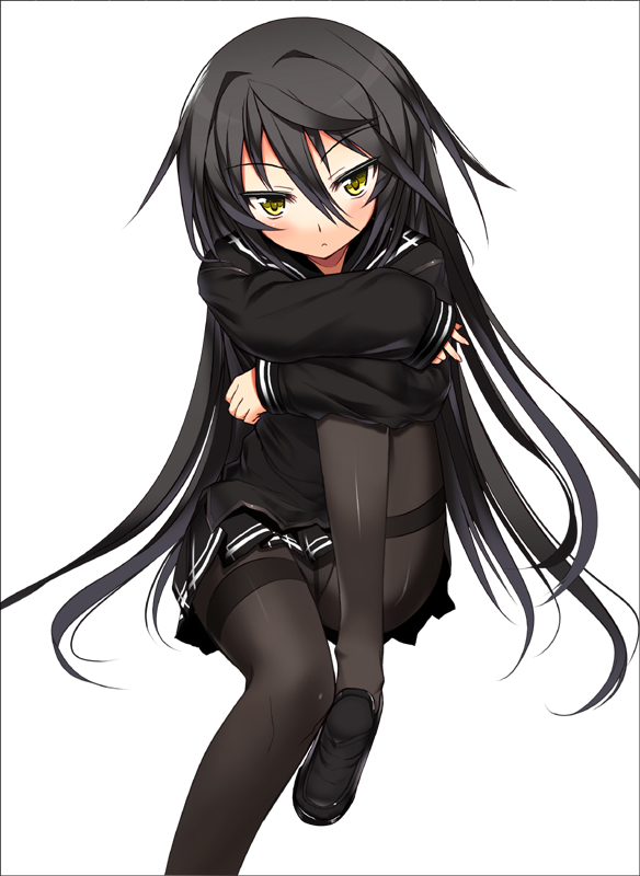 1boy1girlblack hairblushcrotch seamfemale focushugging own legslong hairpantiespanties under pantyhosepantyhosepantyshotschool uniformskirtsolothighband pantyhoseunderwearupskirtvery long hairyellow eyes