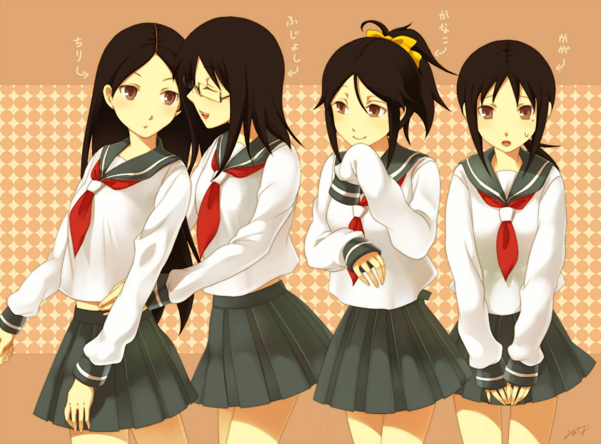 jimu kaji, kajimiya (kaji), bad id, bad pixiv id, 2girls, brown eyes, choker, dress, flower, hair ribbon, long hair, multiple girls, ribbon, smile