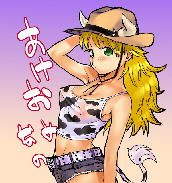 nagata tsubasa, houjou satoko, ryuuguu rena, sonozaki shion, higurashi no naku koro ni, highres, non-web source, 00s, 4girls, angel mort, blonde hair, blue eyes, blush, bow, breasts, brown hair, cleavage, dessert, detached collar, faceless, faceless female, food, green hair, hair ribbon, half updo, large breasts, long hair, looking at viewer, multiple girls, one eye closed, open mouth, ribbon, short hair, smile, waitress