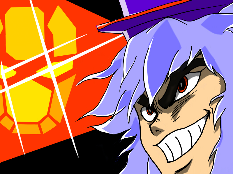 :d1girlblue hairclenched teethcrossoverevil smilefemale focushatlong hairopen mouthparodyshaded facesmilesolotate eboshiteethupper body