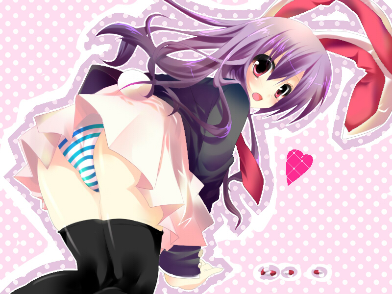 1girlanimal earsblack thighhighsfemale focuslong hairpantiespurple hairrabbit earsskirtsolostriped clothesstriped pantiesthighhighsunderwear