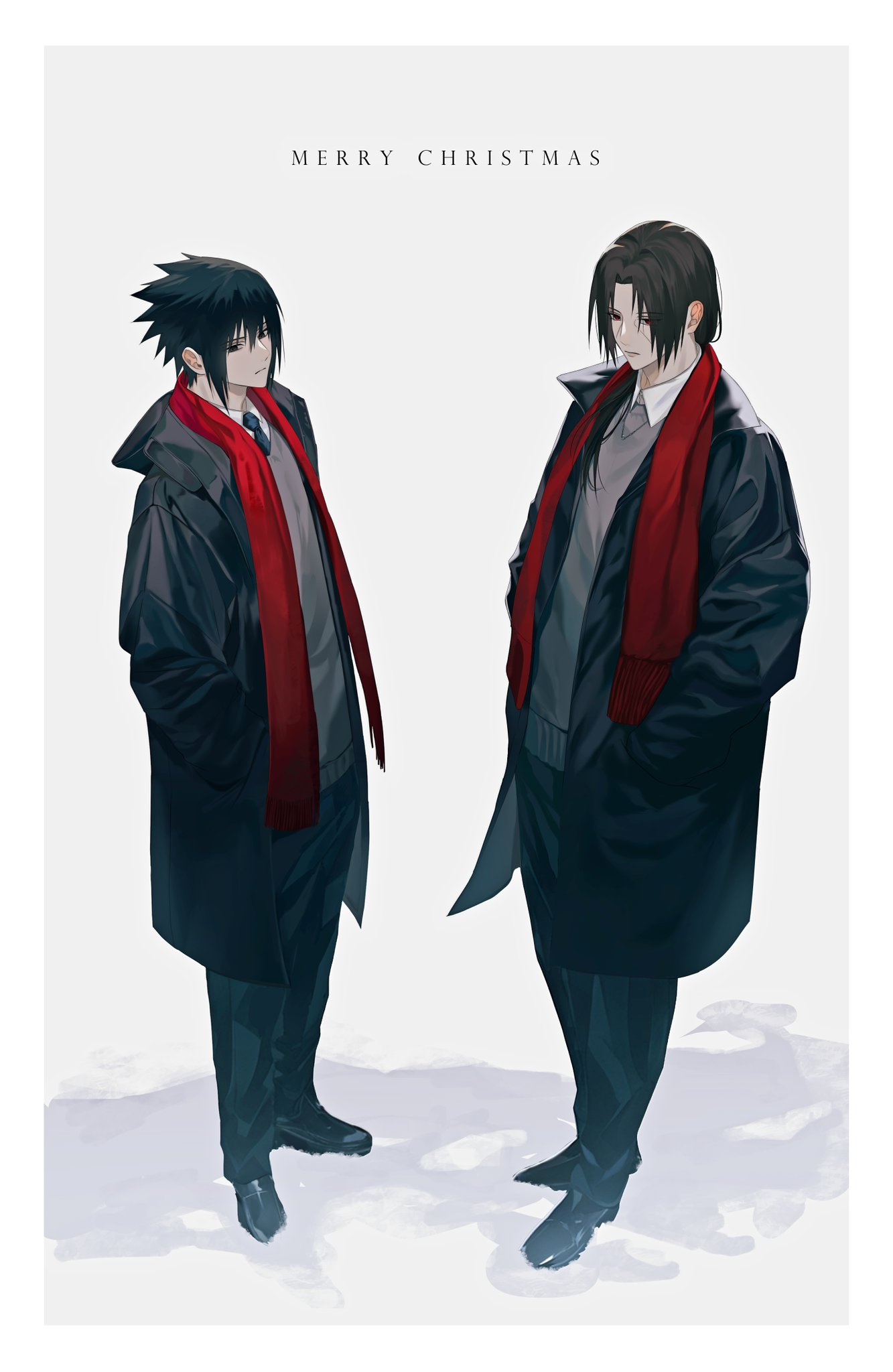 2boysblack coatblack necktieblack pantsblack shoesborderbrothersclosed mouthcoatcollared shirtfacial markfull bodygrey backgroundgrey neckerchiefgrey sweaterhair between eyeshair over shoulderhands in pocketslight frownlong hairlow ponytailmale focusmerry christmasmultiple boysneckerchiefnecktiepantsparted bangsponytailppagtured eyesred scarfscarfshirtshirt under sweatershoesshort hairsiblingssnowspiked hairstandingsweaterwhite borderwhite shirt