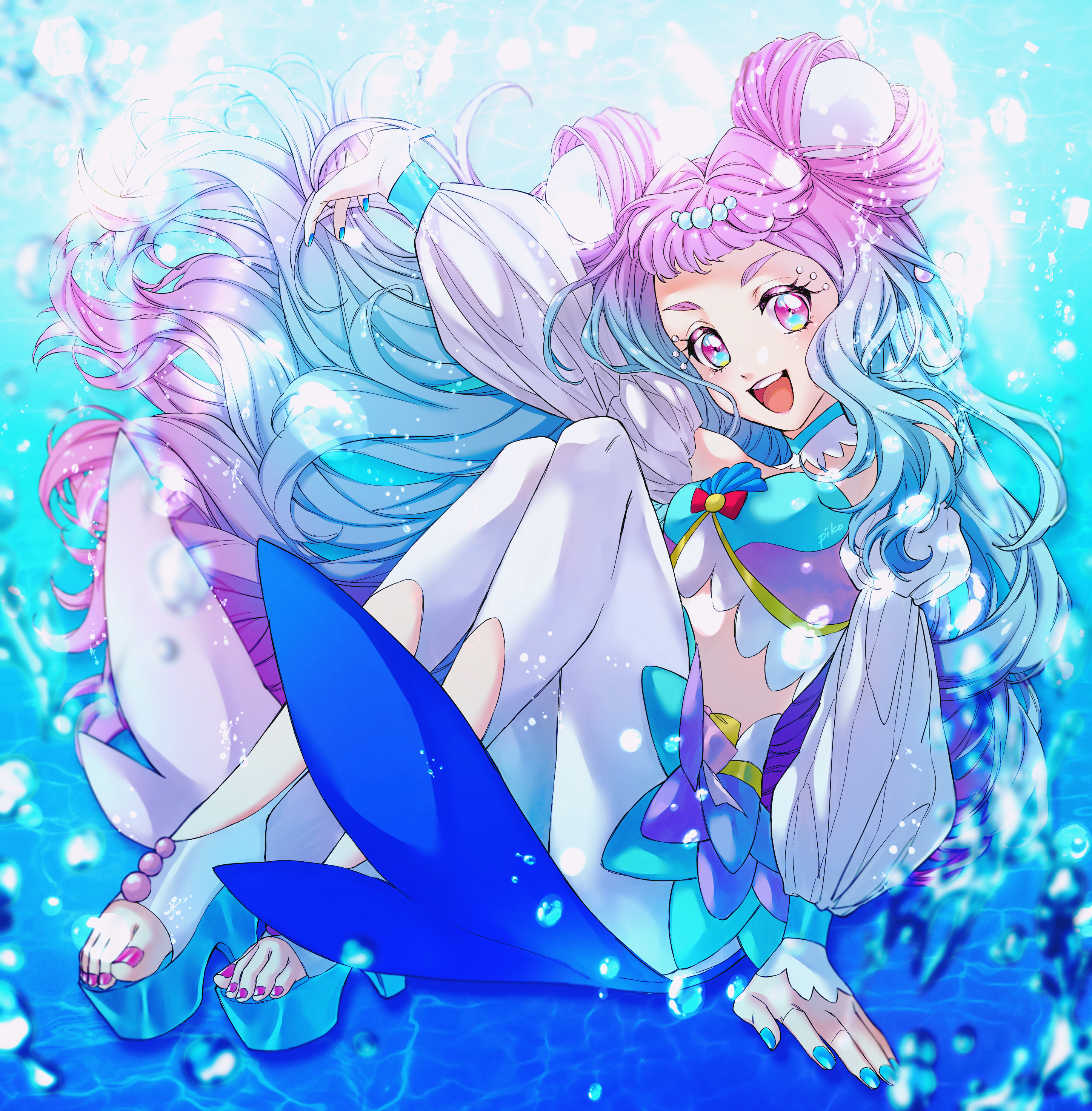 nagumo yuuki, pachira, renkin san-kyuu magical pokaan, 1girl, bare shoulders, female focus, garter straps, hair ribbon, long hair, open mouth, pointy ears, ribbon, simple background, solo, thighhighs, twintails, white background