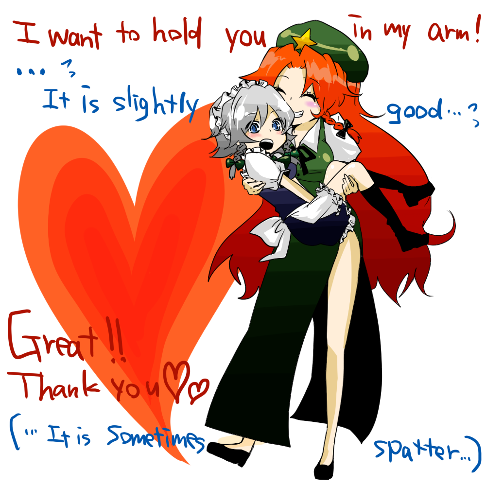 2girlsblue eyesbraidbreastscarryingenglish textengrish textfemale focushatheartlong hairmaidmultiple girlsprincess carryranguagered hairribbonshort hairskirttwin braidsyuri