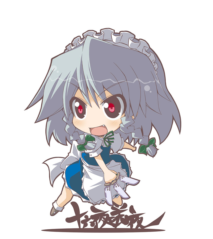 1girlbraidchibifangfemale focusknifemaidred eyessolothrowing knifetwin braidsweaponwhite background