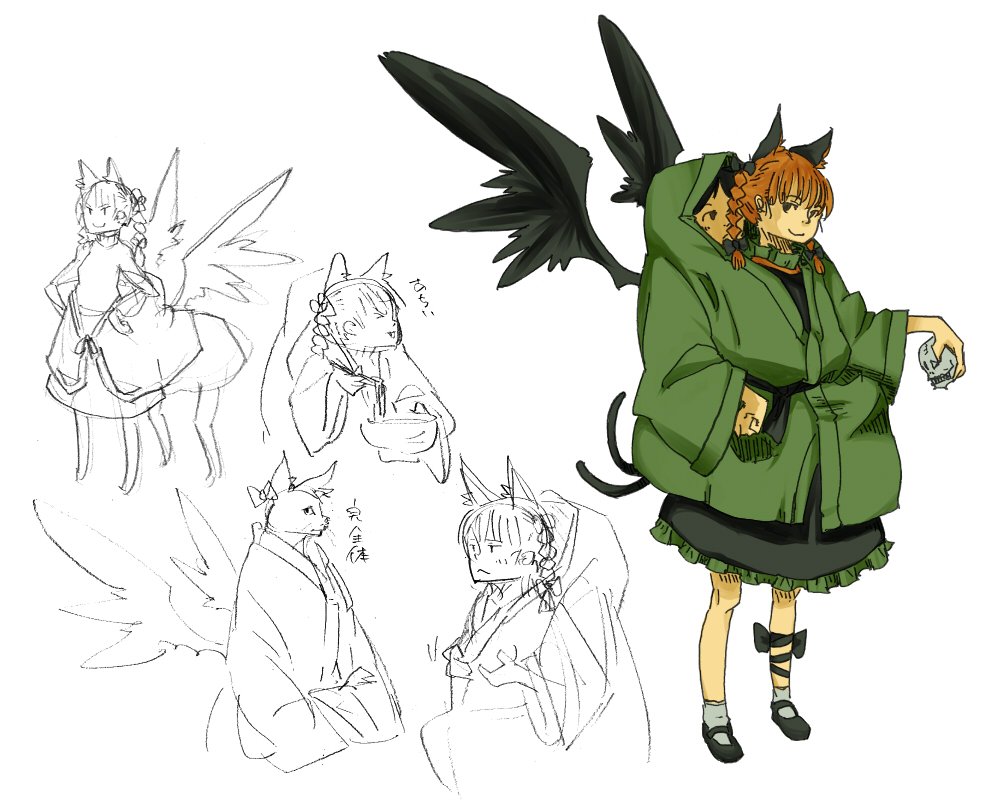 2girlsanimal earsbraidcat earscat girlfemale focusmultiple girlsnininbaorishared clothessketchwings