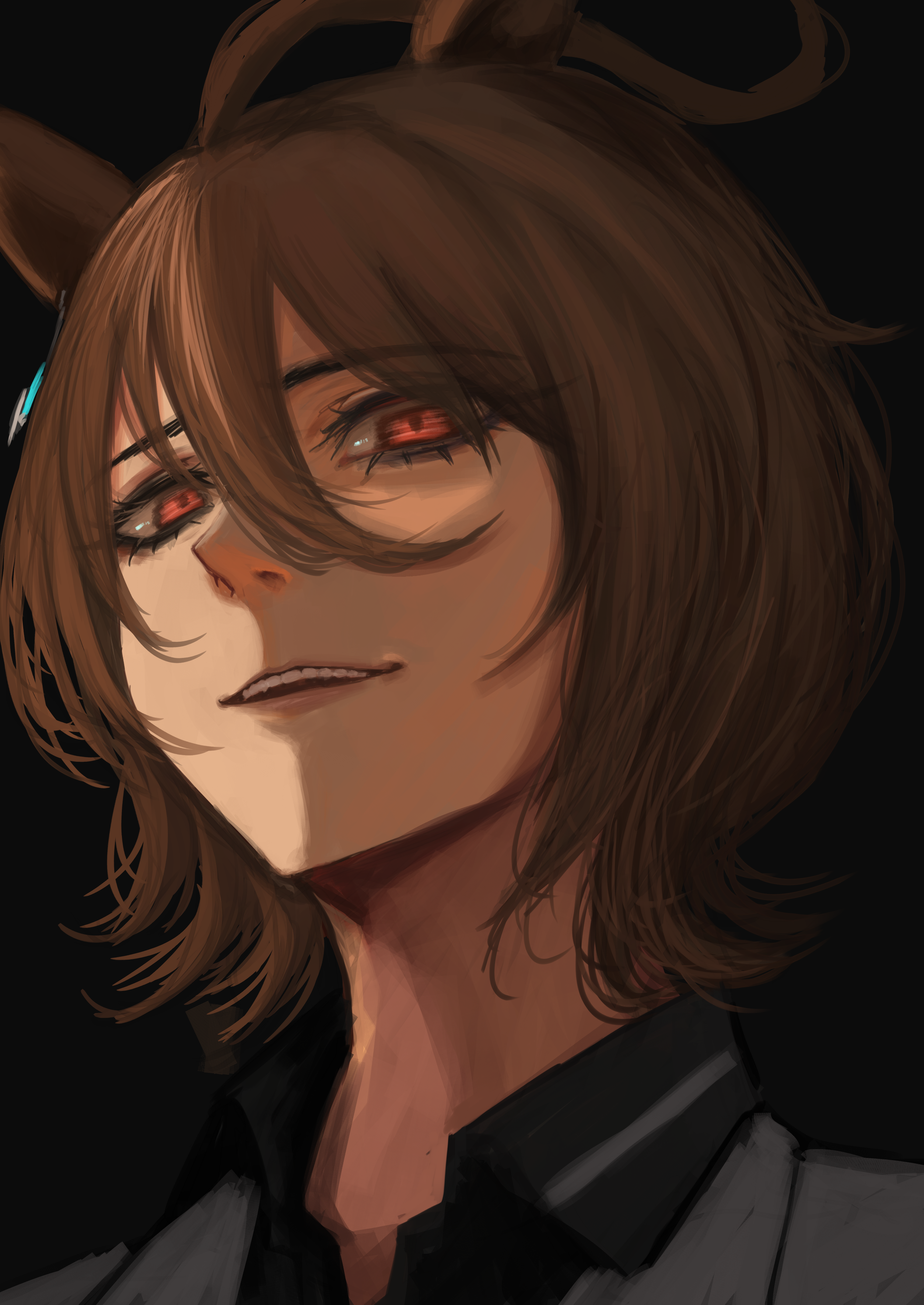 igurumi 00128, gokotai, gokotai's tigers, touken ranbu, absurdres, highres, 1boy, animal, animal on head, black shirt, from side, hat, male focus, on head, open mouth, orange eyes, peaked cap, shirt, short hair, simple background, tiger, white background, white tiger