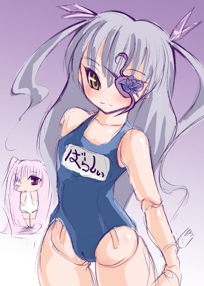 00s2girlsblue one-piece swimsuitblushcowboy shotcropped legsdoll jointseyepatchjointslong hairlooking at viewermultiple girlsone-piece swimsuitschool swimsuitsolo focusswimsuityellow eyes