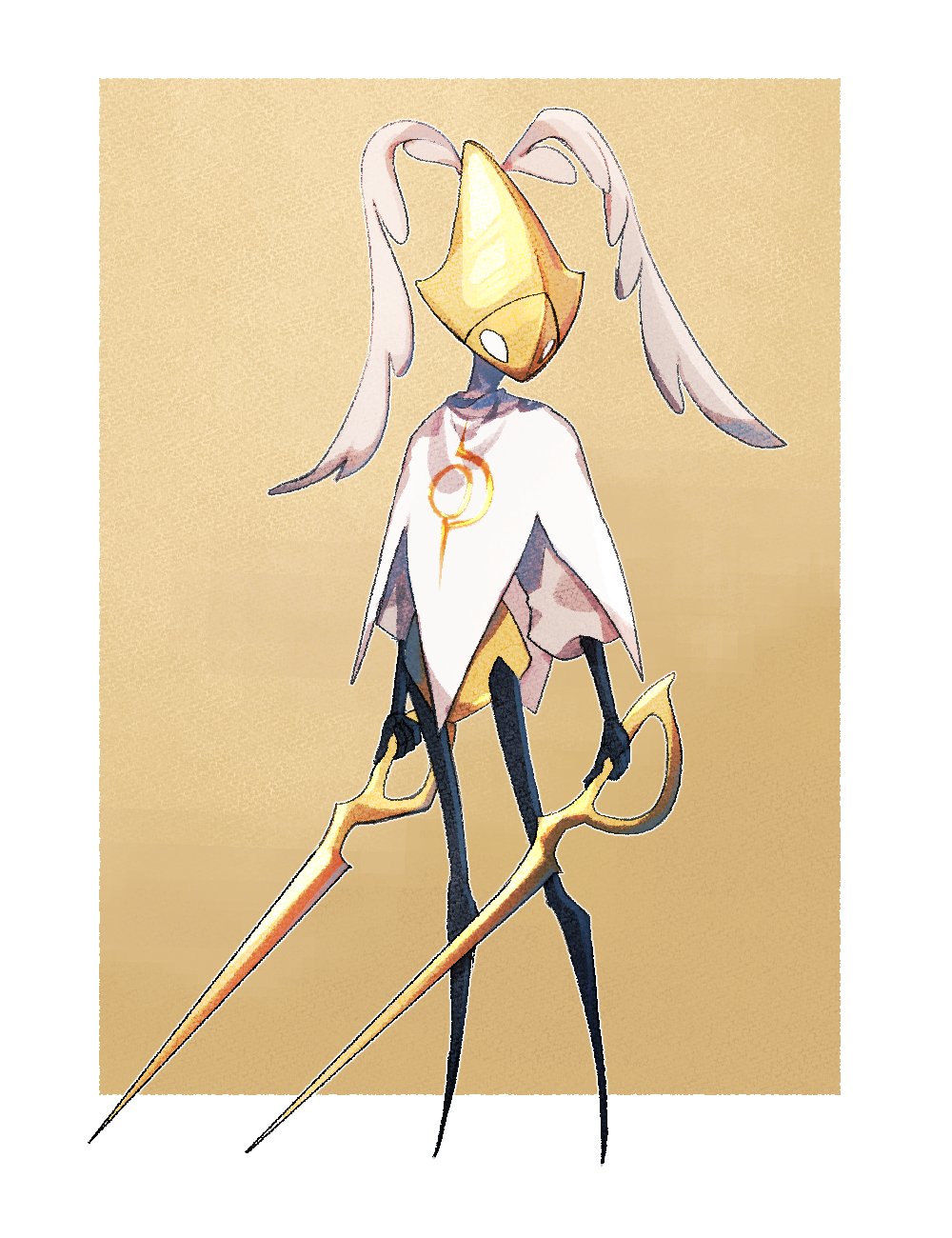 1otherblack skinbordercapeletcolored skinfull bodyholdingholding swordholding weaponother focusoutside bordersecond sentinel (hollow knight)solostandingswordweaponwhite borderwhite capeletwhite eyesyellow background