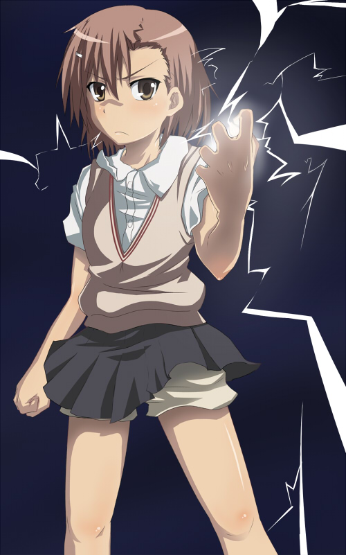 00sangryasymmetrical bangsbrown eyesbrown hairelectricityelectrokinesisfrownschoolschool uniformshort hairshortsskirtsolosweater vestvest