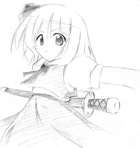 koiwai yotsuba, yotsubato!, 1girl, child, female focus, frown, greyscale, monochrome, open mouth, outdoors, quad tails, short hair, simple background, solo, white background