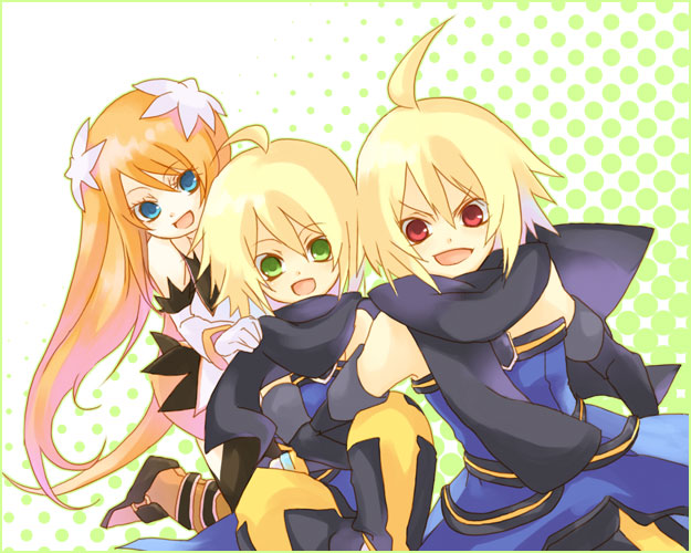 00s1girl2boysblonde hairblue eyesbrown hairdual personaflowerglovesgreen eyeshair flowerhair ornamentlong hairmultiple boysred eyesscarfsmile