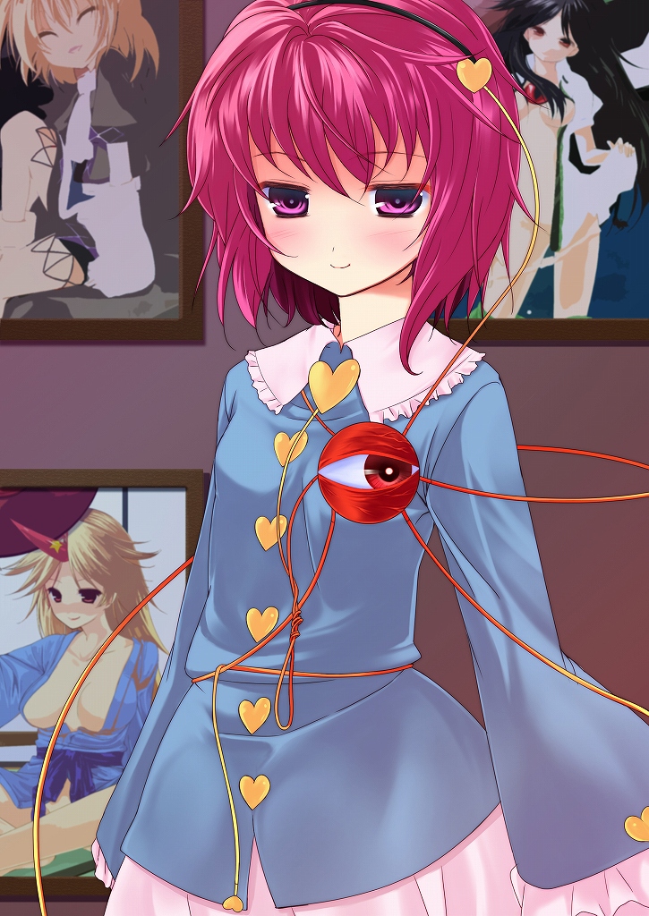 mame1645, nakano itsuki, go-toubun no hanayome, absurdres, commentary request, highres, translated, 1girl, ahoge, bandages, black nails, blue eyes, blush, breasts, claw pose, hair between eyes, hair ornament, looking at viewer, nervous smile, open mouth, red hair, shy, siblings, simple background, smile, sound effects, speech bubble, upper body