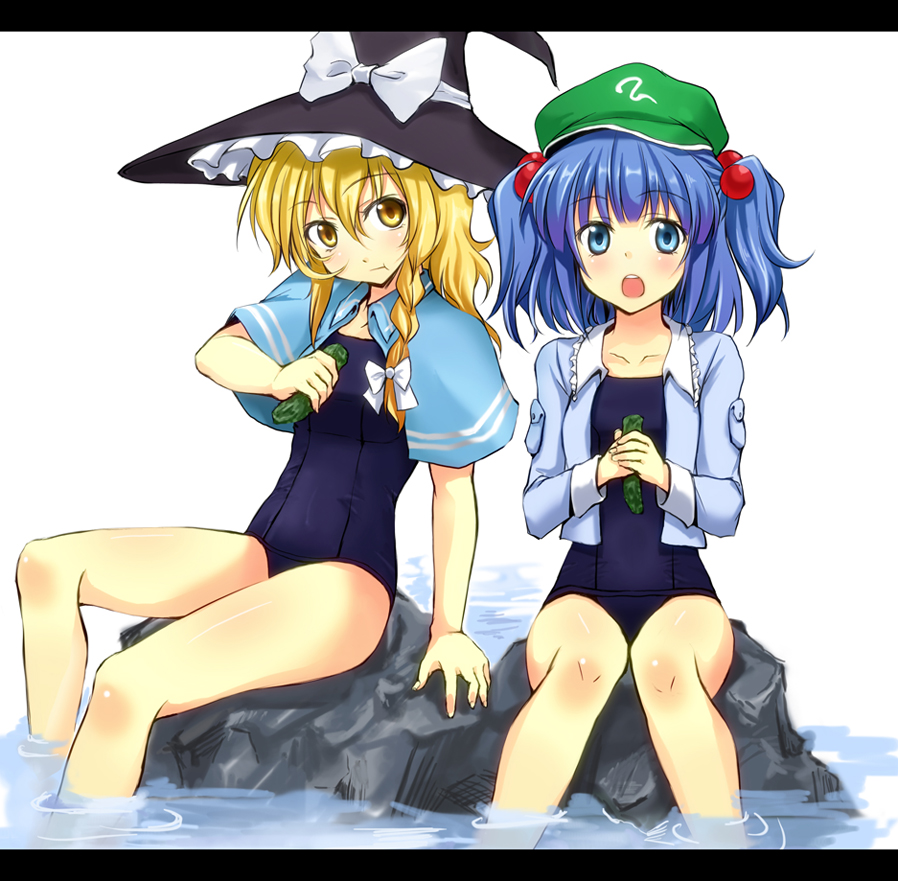 :t2girlsblonde hairblue eyesblue hairbraidcapeletcucumberfemale focushair bobbleshair ornamenthatletterboxedmultiple girlsno pantsone-piece swimsuitopen clothesschool swimsuitswimsuitswimsuit under clothestwintailstwo side upwaterwitchwitch hatyellow eyes
