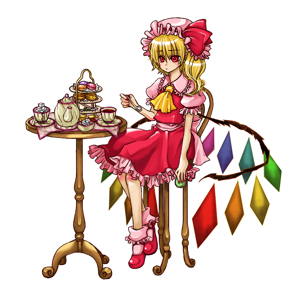 1girlblonde hairblousecollared shirtcupfemale focushatmob capred eyesred shoessaucershirtshoesshort hairsockssolosugar cubeteacupwhite hatwhite shirtwhite sockswings