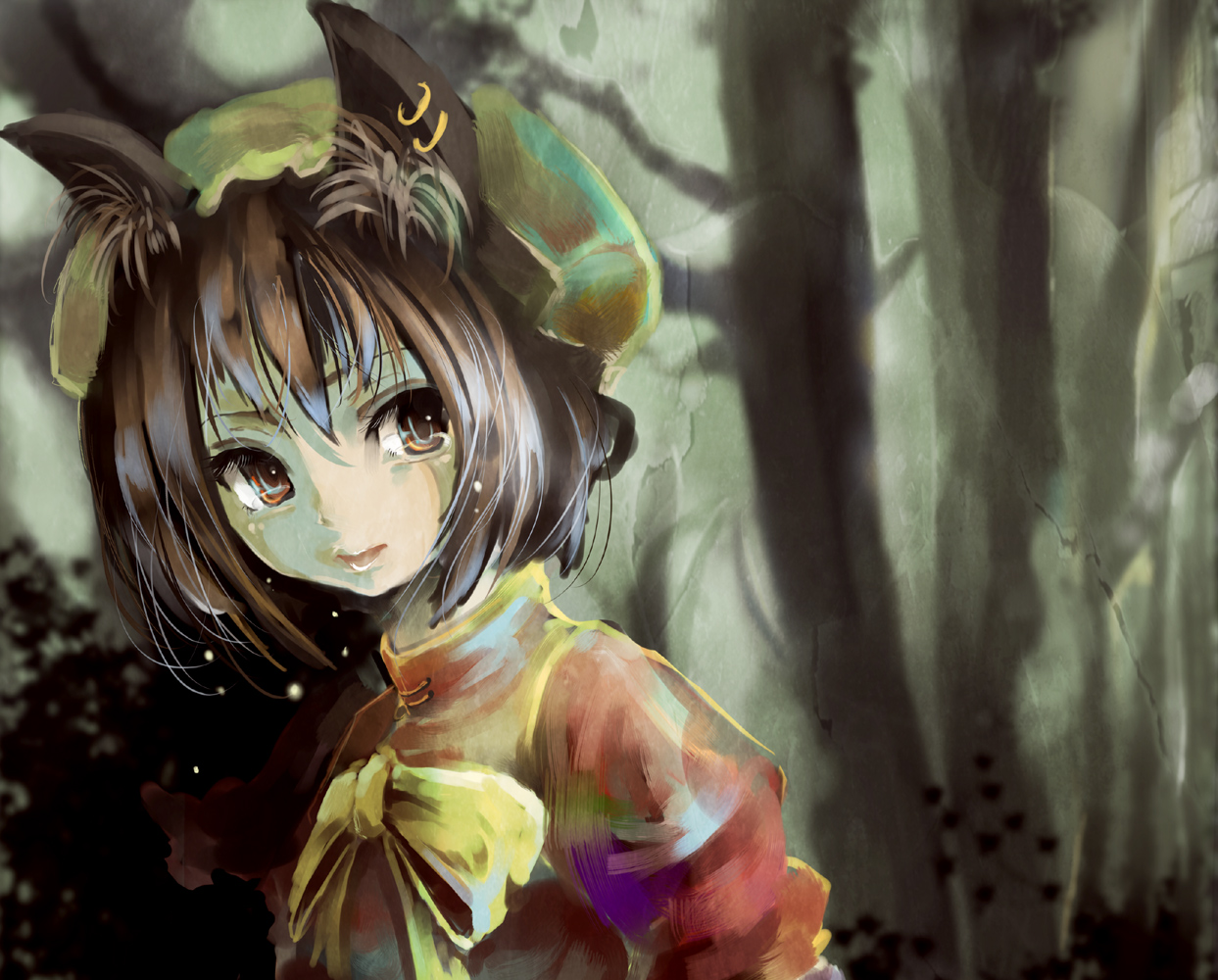 1girlanimal earsbowbrown eyesbrown haircat earscat girlearringsfemale focushatjewelrynatureoutdoorsplantribbonsolotearsupper body