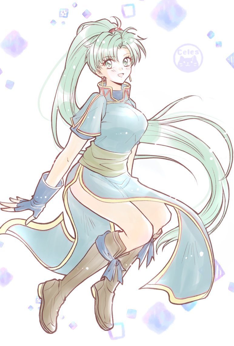 matsuppoi, onozuka komachi, touhou, 1girl, blue dress, blue sash, dress, looking to the side, medium hair, red eyes, red hair, sash, sleeveless, solo, sundress
