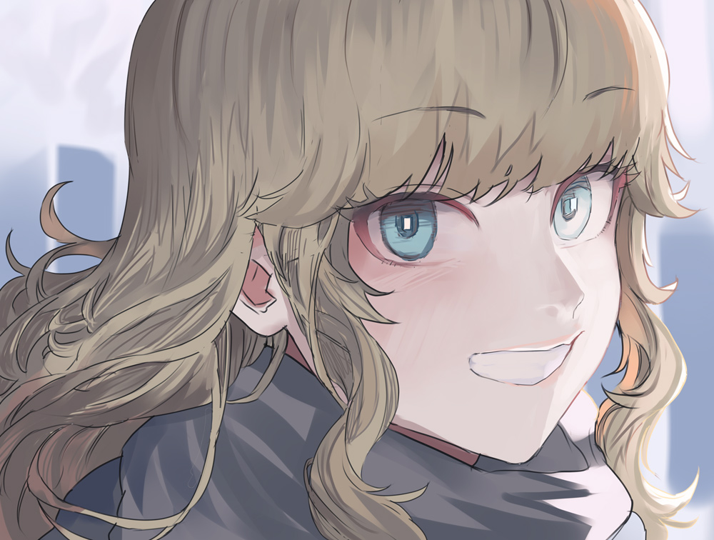 razalor, elledara (razalor), original, commentary, highres, 1girl, arm up, armor, armpits, artist name, belt, bracer, breastplate, brown gloves, brown pants, closed eyes, elbow gloves, facing viewer, forehead, gloves, long hair, long pointy ears, pants, parted lips, pointy ears, purple hair, scar, scar across eye, scar on face, serious, solo, sword, toned, toned female, weapon