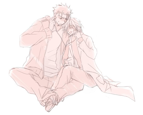 tetsu (kimuchi), original, 1boy, 1girl, bare shoulders, belt, black hair, boots, bracelet, brown eyes, brown hair, grey eyes, jewelry, legs, muscular, pants, pantyhose, skirt, spiked hair, vest