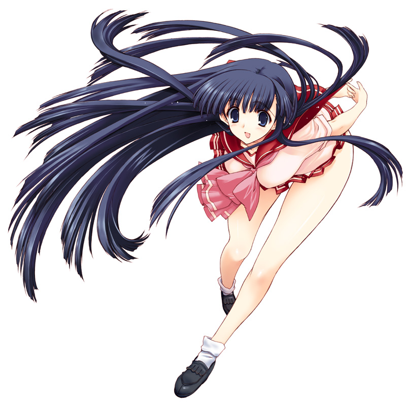 00s1girlarms behind backblack hairblack shoesblue eyesblue hairbowingfemale focusfull bodyleaning forwardlong hairmatching hair/eyesown hands togetherschool uniformserafukushoessimple backgroundsolovery long hairwhite background