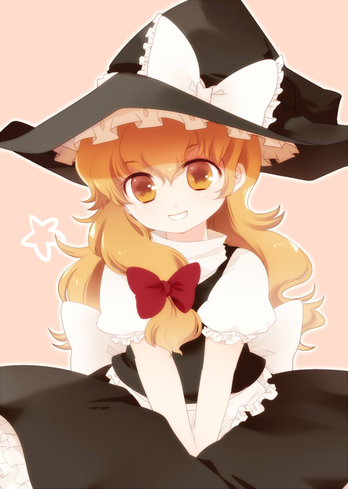 1girlblonde hairbowfemale focushatlong hairsimple backgroundskirtsolostar (symbol)symbol-shaped pupilswitchwitch hatyellow eyes