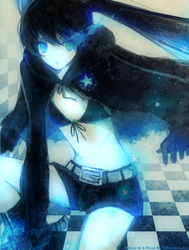 10s1girlbeltbikinibikini top onlyblack hairblue eyesbootscheckered floorcoatfemale focusflat chestfront-tie topglovesglowingglowing eyeshoodhooded jacketjacketkatanaknee bootslong hairmidriffnavelpale skinscarshort shortsshortssolostar (symbol)stitchesswimsuitswordtwintailsuneven twintailsvery long hairweaponzipper
