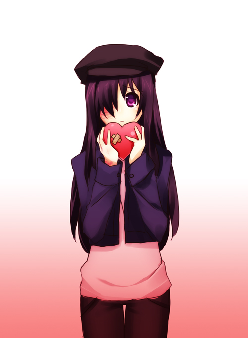 10s1boy1girlbandagescasualfemale focusgradient backgroundhair over one eyehatheartlong hairnewsboy cappurple eyespurple hairsolovalentine