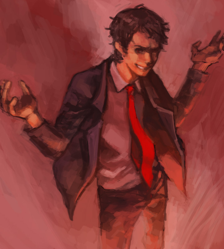 onija tarou, original, brown eyes, brown hair, oekaki, ponytail, school uniform, serafuku, solo, squatting