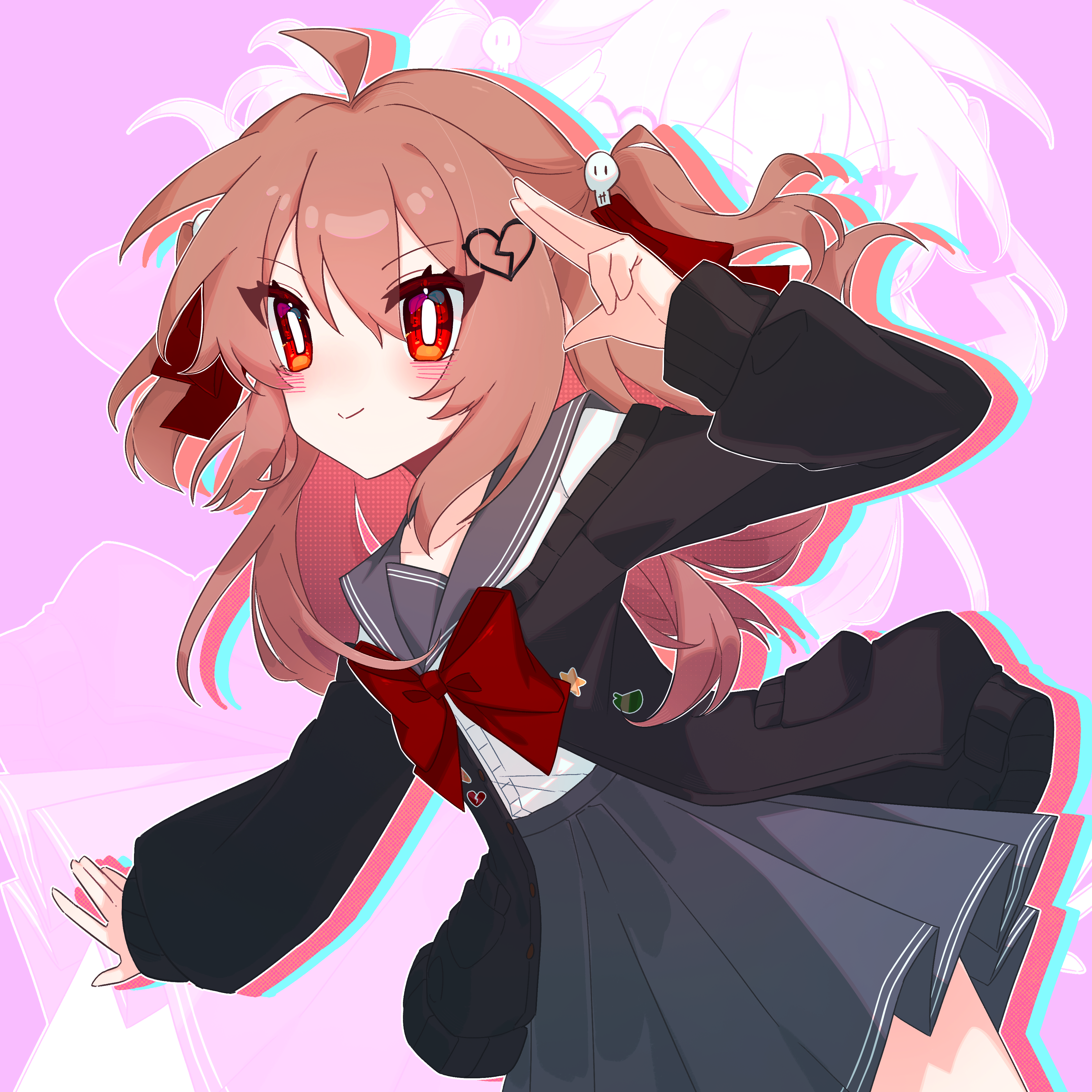 1girlahogearm upbadgeblack cardiganblack sailor collarblack skirtbowbowtiebroken heartbroken heart hair ornamentbrown hairbutton badgecardigancowboy shotdress shirtfrom sidehair ornamenthair ribbonheartlong hairminiskirtpleated skirtred bowred bowtiered eyesred ribbonribbonsailor collarshirtshirt tucked inskirtskull hair ornamentsolotwo side upuser hmyv8473vedal aivirtual youtuberwhite shirt