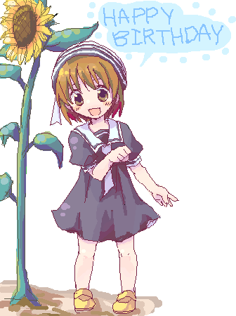 rioshi, achakura, asakura ryoko, nagato yuki, suzumiya haruhi-chan no yuuutsu, suzumiya haruhi no yuuutsu, silver hair, translation request, 00s, 2girls, bag, blue eyes, blue hair, bunny headphones, chibi, headphones, multiple girls, school uniform, serafuku, short hair