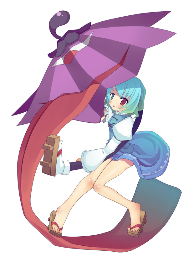 :p1girlfemale focusfull bodygetagreen eyesgreen hairheterochromiakarakasa obakered eyessimple backgroundsolotonguetongue outumbrellawhite background