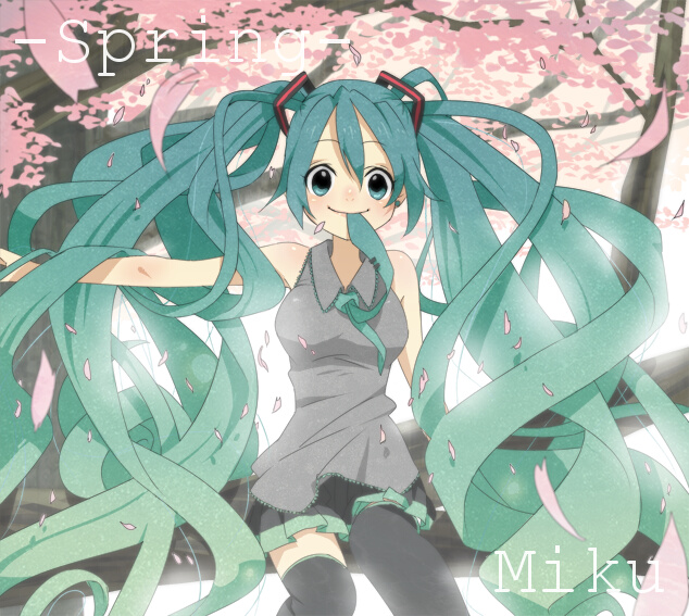1girlaqua eyesaqua haircherry blossomsfemale focusin treelong hairmouth holdnecktiesolothighhighstreetwintailsvery long hairzettai ryouiki