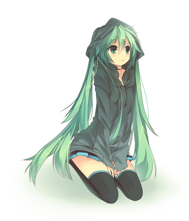 tenmaso, saya (saya no uta), nitroplus, saya no uta, third-party edit, 1girl, black hair, dress, feathers, female focus, green eyes, green hair, hair flaps, long hair, matching hair/eyes, open shoes, panties, pantyshot, shoes, sitting, solo, underwear, water, white dress, white panties