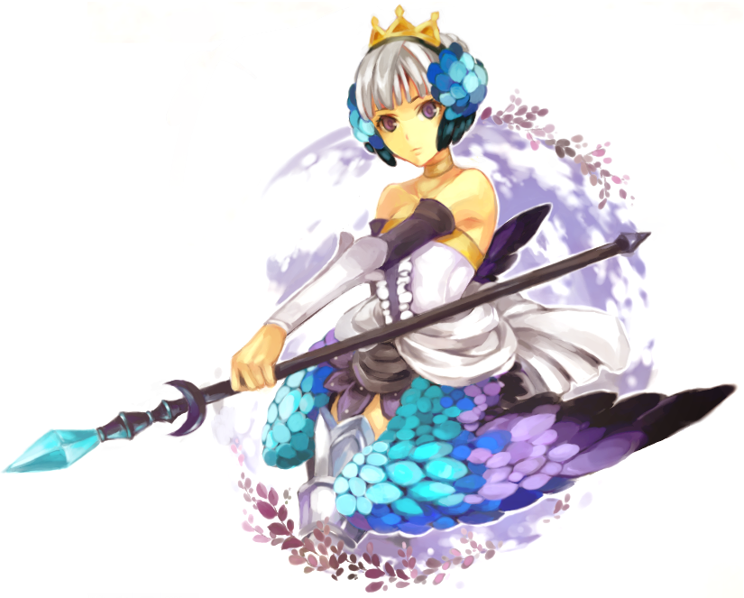 1girlarmorarmored dresschokercrowndresselbow glovesfemale focusglovesmulticolored wingspolearmpterugessolospearstraplessstrapless dressweaponwings