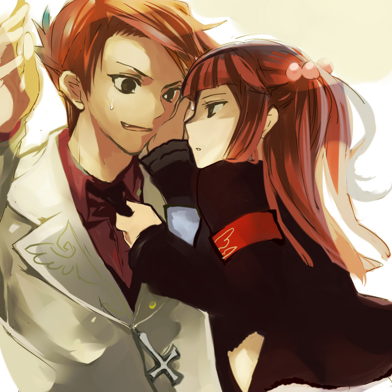 00s1boy1girlarmbandblack eyesblushbrother and sisterclothes grabhair bobbleshair ornamentjacketnecktienecktie grabneckwear grabred hairsiblingstwintails