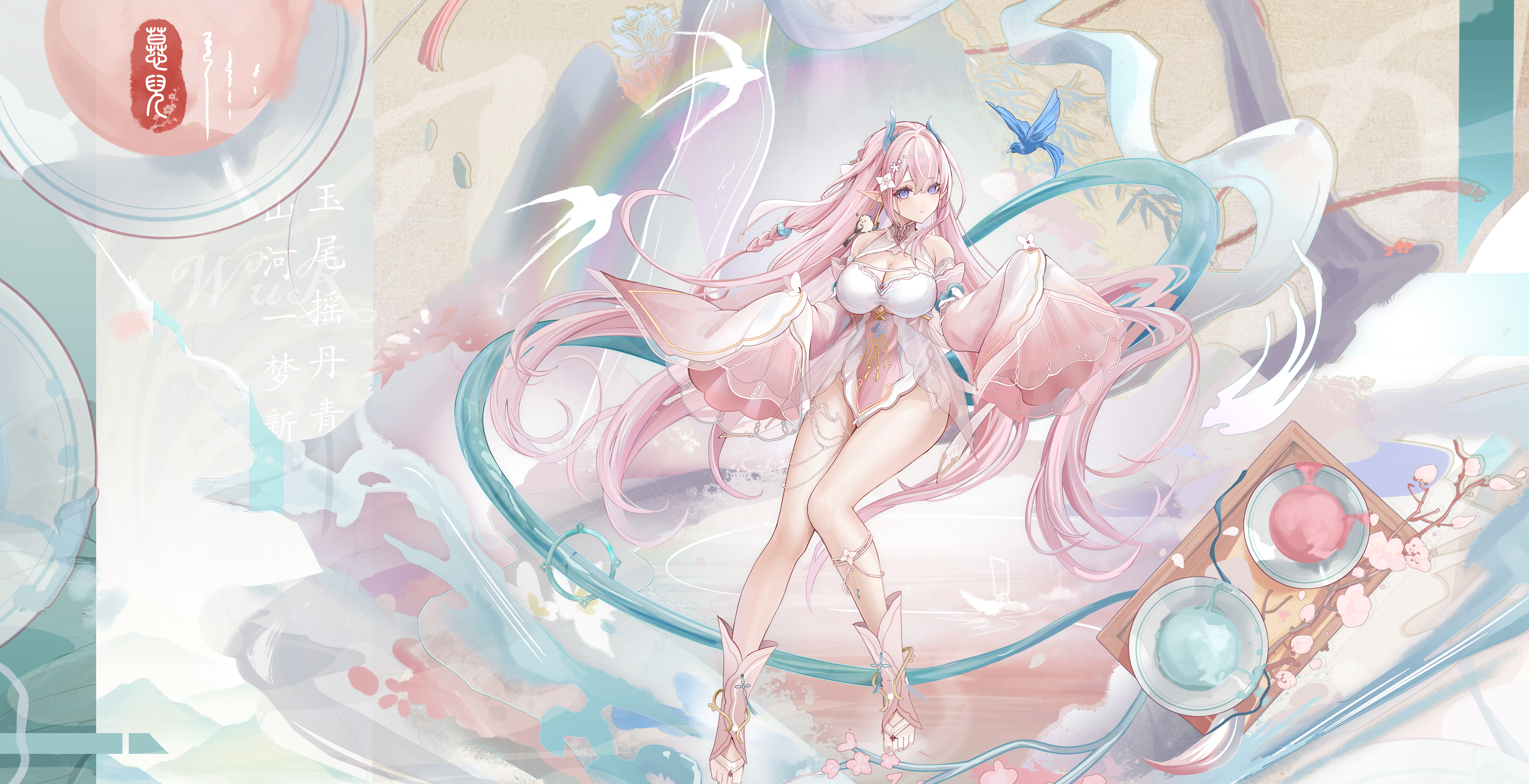 1girlanimalanimal on shoulderbirdbird on shoulderblue birdblue eyesbootsbowlbreastscenter openingcleavageclosed mouthdetached sleevesdressearringselfflowerfull bodyhair flowerhair ornamentjewelrylarge breastslegslong hairnail polishopen-toe shoespink bootspink hairpink nailspointy earssleeves past fingerssleeves past wristssmilethighstoenail polishtoenailstrayvery long hairwhite birdwhite dresswide sleeves