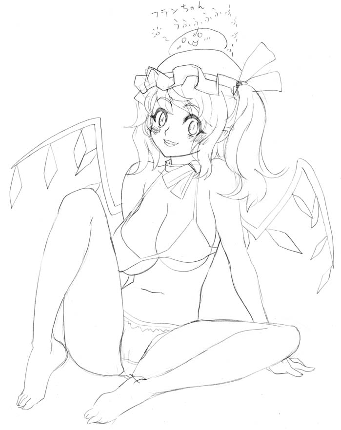 1girlaged upalternate breast size (larger)barefootbikinibreastscleavagefeetfemale focusfull bodygreyscalehatlarge breastsmonochromesketchsoloswimsuitwhite backgroundwings