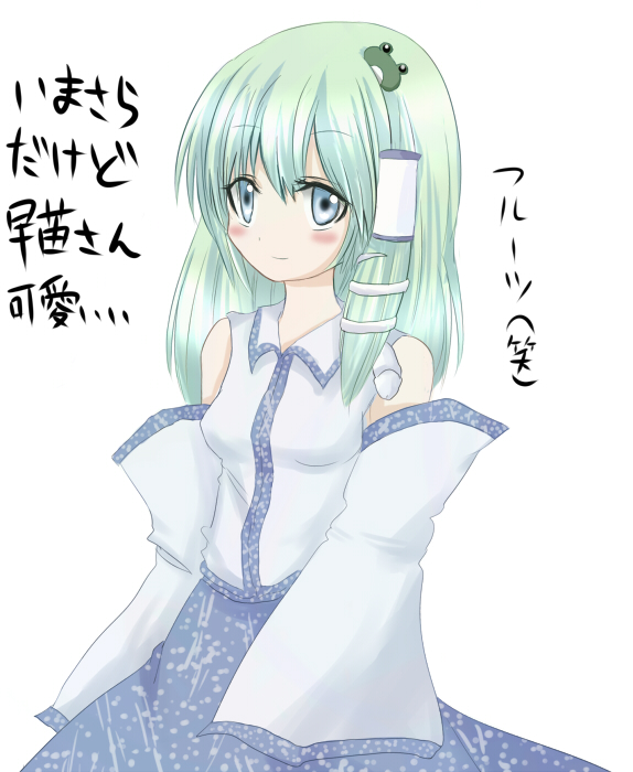 1girldetached sleevesgreen hairjapanese clotheslong sleeveslooking at viewermikopenissimple backgroundsolowhite background