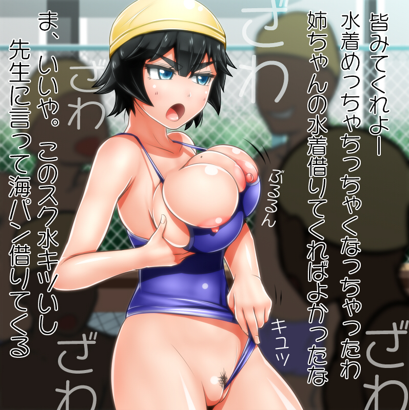 4boysblack hairbreastsfemaleFlag for Deletionmultiple boysnipplesone-piece swimsuitswimcapswimsuit