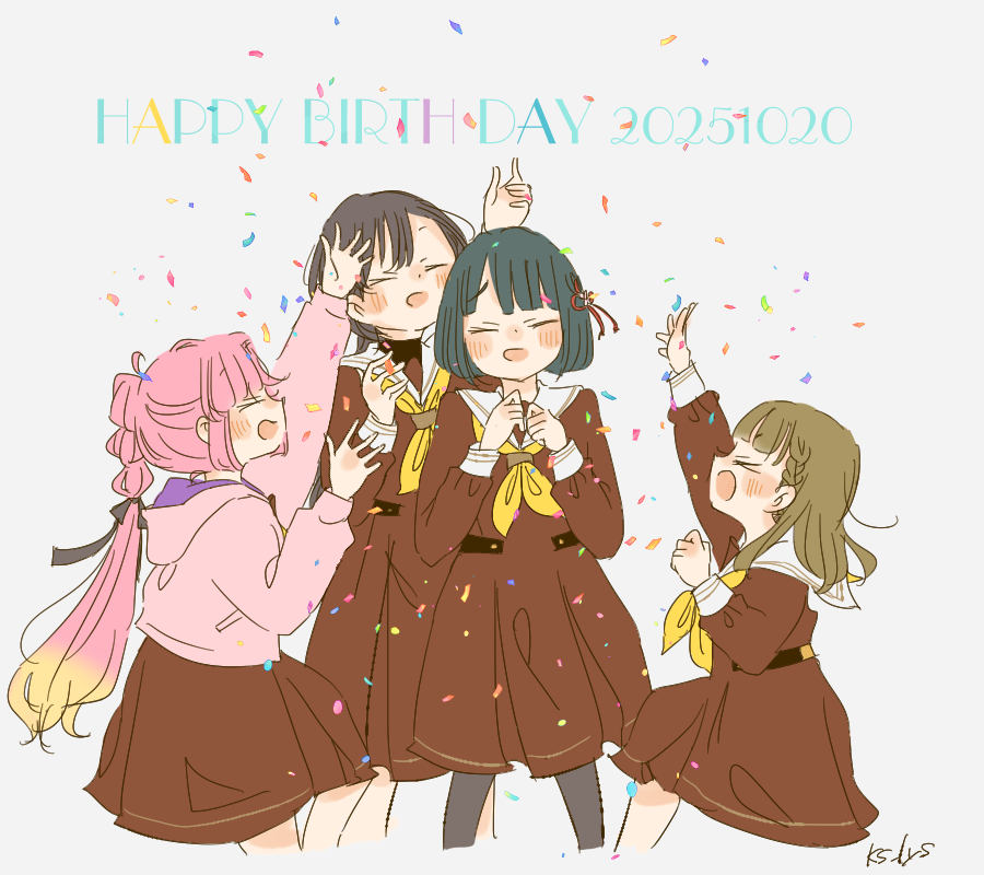 :d4girlsahogeblack hairblack ribbonblunt bangsblunt endsbob cutbraidbrown dressbrown hairclosed eyesconfettidateddressfacing viewerflowerflower knothair flowerhair ornamenthair ribbonhappy birthdayhasu no shousankakuhasu no sora school uniformjellyfish cutlong hairmedium dressmulti-tied hairmultiple girlsneckerchiefon one kneeopen mouthpink hairpleated dressponytailprofileraised inner eyebrowsribbonsailor collarsailor dressschool uniformshort hairside ahogeside braidssidelockssimple backgroundsmilestandingtwitter usernamevirtual youtuberwhite backgroundwhite flowerwhite sailor collarwinter uniformyellow neckerchief