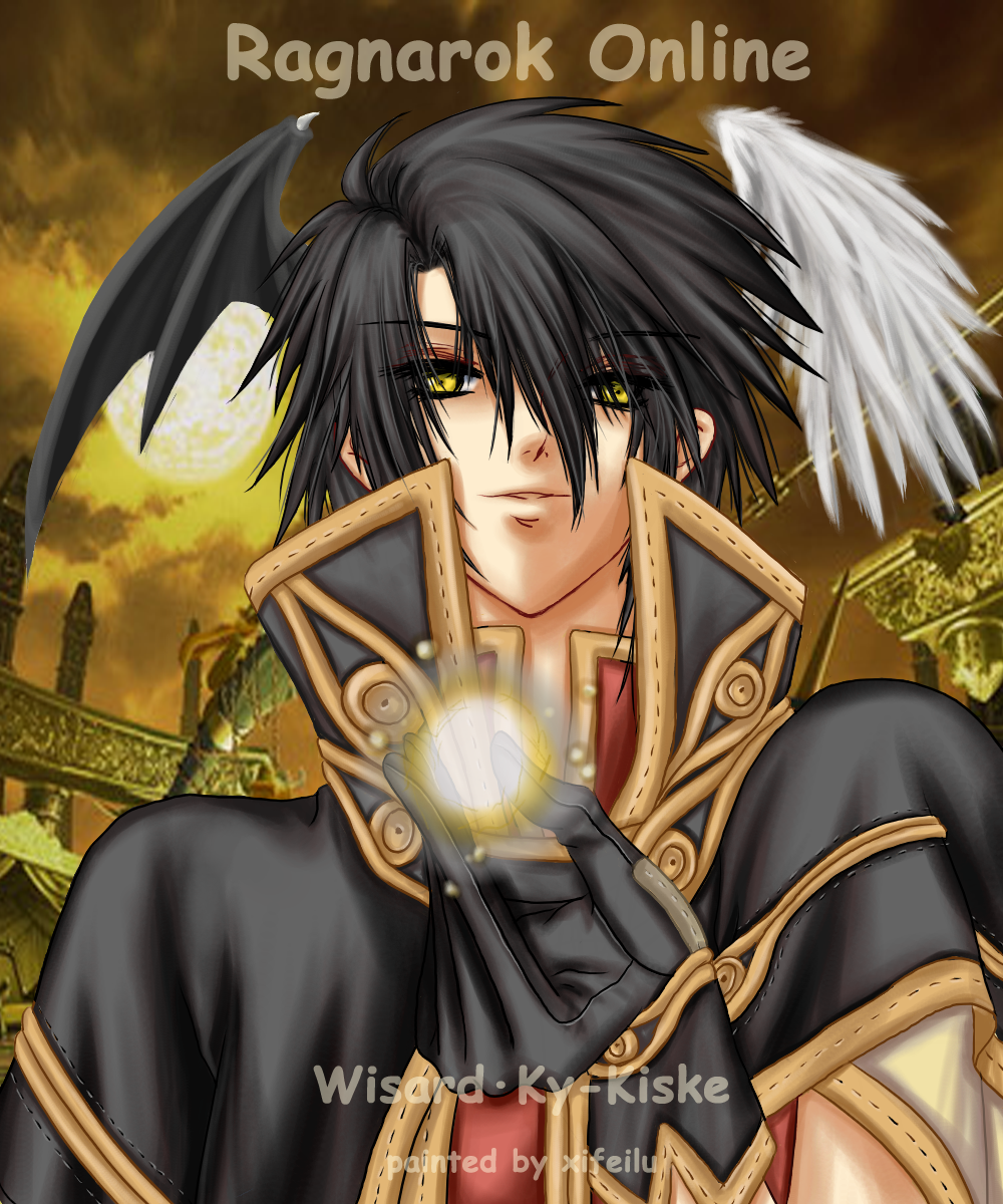 1boy2000s (style)asymmetrical wingsblack capeletblack glovesblack hairbrown skycapeletcharacter namecloudcommentary typocopyright namedemon wingsenergy balleyes visible through hairgloveshair between eyeshead wingslong bangslooking at viewermale focusmismatched wingsmowu5open mouthphoto backgroundred shirtshirtshort hairsmilesolowhite wingswingsyellow eyes