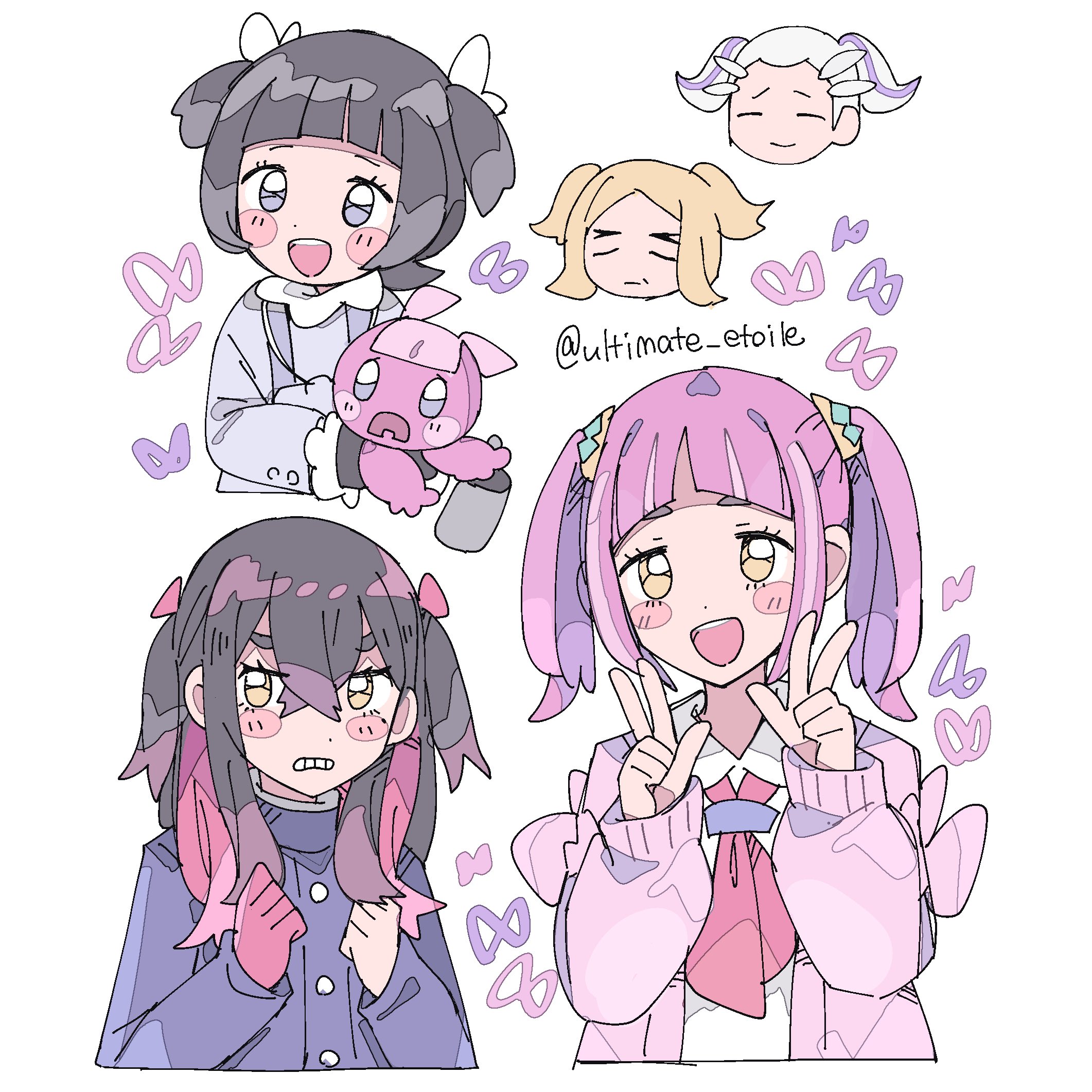 2boys3girlsalternate hairstylearched bangsblack glovesblack hairblonde hairblue jacketblush stickersbowcardiganchibichibi insetclenched handsclenched teethcrossed bangsdressglovesgrey dresshair between eyeshair ornamenthairclipjacketlong hairlong sleeveslooking at viewermolemole under eyemulticolored hairmultiple boysmultiple girlsneckerchiefopen mouthpink cardiganpink hairpokemon (creature)purple hairred bowred hairred neckerchiefshirtshort hairsimple backgroundteethtwintailstwo-tone hairupper bodywwhite backgroundwhite hairwhite shirtyellow eyes