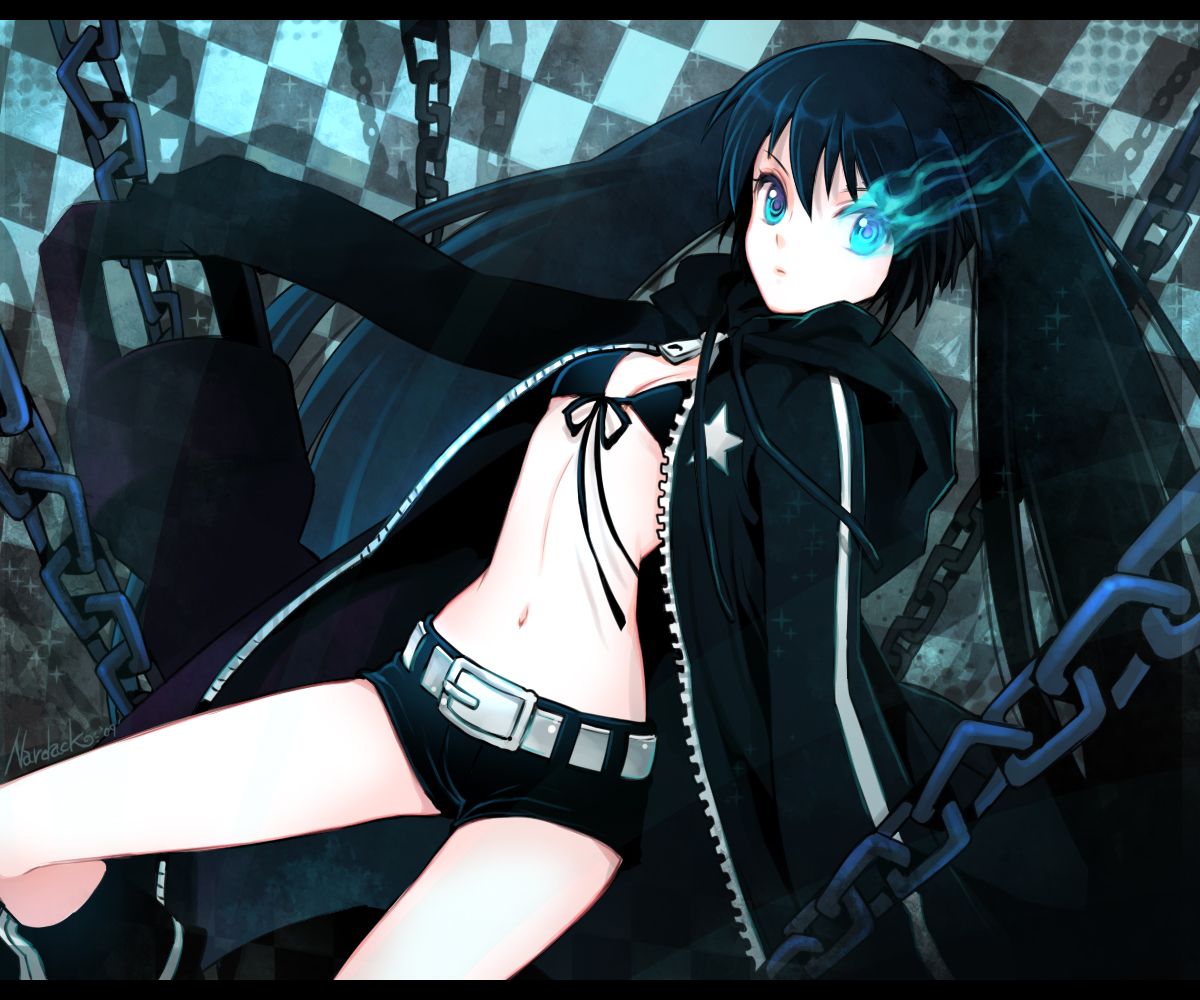 10s1girlbeltbikinibikini top onlyblack bikiniblack hairblue eyesbootscapechainfemale focuslong hairmidriffnavelshortssoloswimsuittwintails